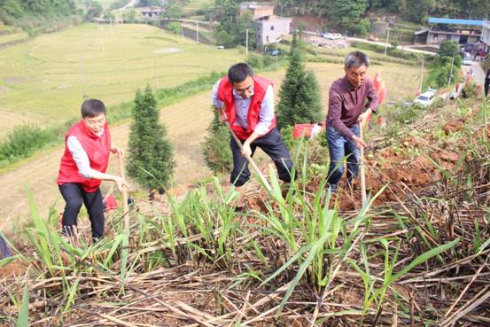 中国纺织挂职扶贫副县长刘淑川带领乡干部在商品樱桃基地平整土地