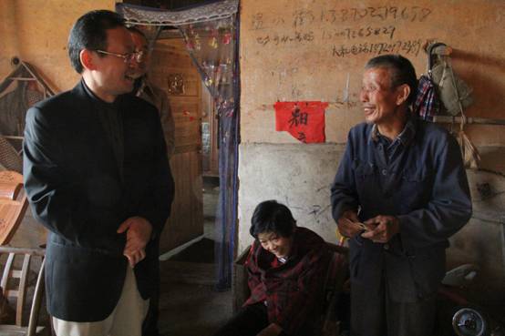 中粮集团党组成员、副总裁兼中国纺织党委书记、董事长栾日成在修水县双井村看望贫困户